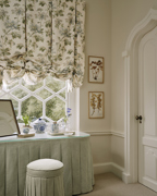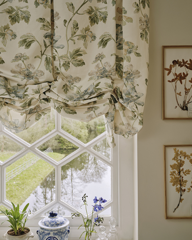 The delicate beauty of open peonies is captured in this softly painted floral, each bloom shaped by a nuanced interplay of tonal colour. Bettina reflects the charm of early twentieth-century block printed florals, where botanical refinement meets confident artistic expression. Soft washes of colour bring vitality to the leaves, a distinctive detail that celebrates the character and craftsmanship of this enduring tradition.