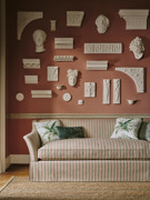 Inspired by a nineteenth-century printed document, Dorney Stripe pairs the enduring appeal of a classic stripe with delicate three dimensional stitch detailing, woven directly into the structure. This subtle texture adds depth and quiet interest while maintaining balance and restraint. Space dyed yarns in the ground introduce gentle tonal variation, enriching the surface and giving the design a layered, considered character that feels both timeless and distinctive.