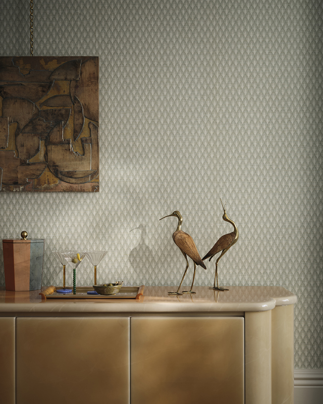 Melia features a delicate fan motif with an Art Deco influence, rendered in a soft tonal palette. Subtle embossing enhances the gentle curves of the design, creating movement and dimension across the surface. This wallpaper adds quiet glamour and works beautifully in both traditional and modern interiors.