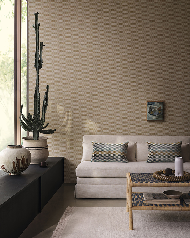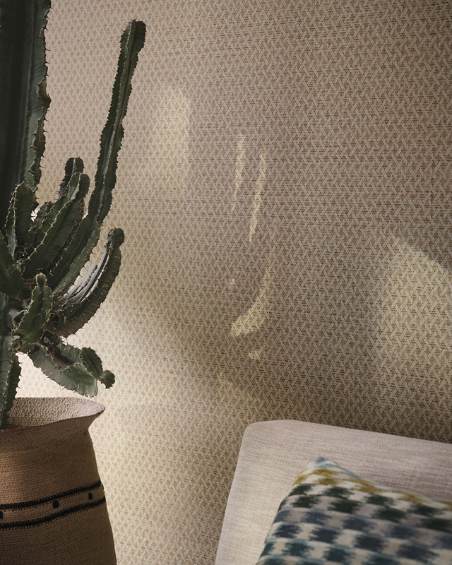 Vigo presents a rustic lattice design that captures the look of intricately woven paper. The lattice is softened by a fine horizontal strié background and enriched by a tactile emboss that brings dimension to the surface. This design lends a relaxed, organic texture to walls.