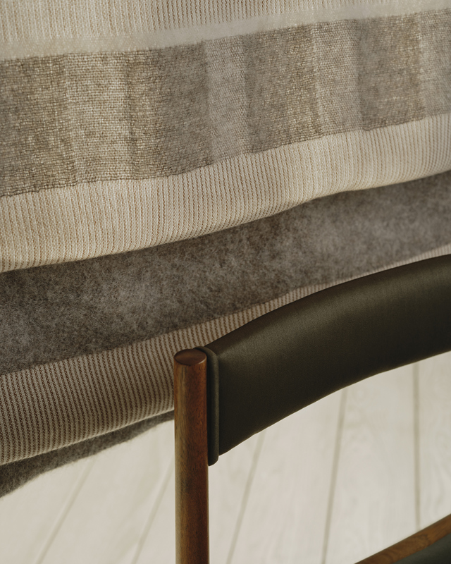 A luxurious blend of fine wool and premium mohair, Oda reveals a broad and confident stripe enriched by brushed texture and refined contrasting tones. Woven in Italy, it carries a sense of richness and expressive character with a beautifully soft hand.