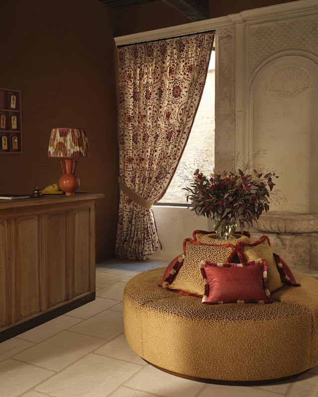 Lazare is a truly opulent silk drapery weave that showcases the artistry of craftsmanship at every stage of its creation. It is meticulously woven on hand-looms, utilising 100% silk yarns that are hand-spun. This fabric encapsulates the pure beauty of silk at its core, characterised by discreet, irregular slubs and nuanced colours achieved through hand dyeing, which grant the fabric its unmistakable charm. Available in a diverse palette with deep and vibrant colours, and boasts an exquisite, fluid drape.