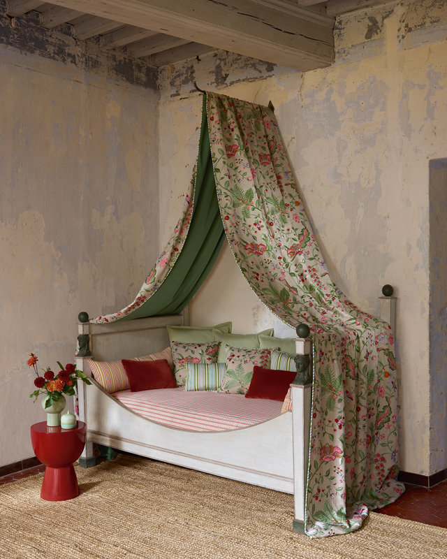 This playful yet elegant stripe is woven in France and inspired by classical French weaves from fashion and home. A versatile small scale pattern available in a vibrant palette of fresh, cheerful tones, it makes the perfect companion fabric with its subtle pops of bright colour adding a lively touch to any space.