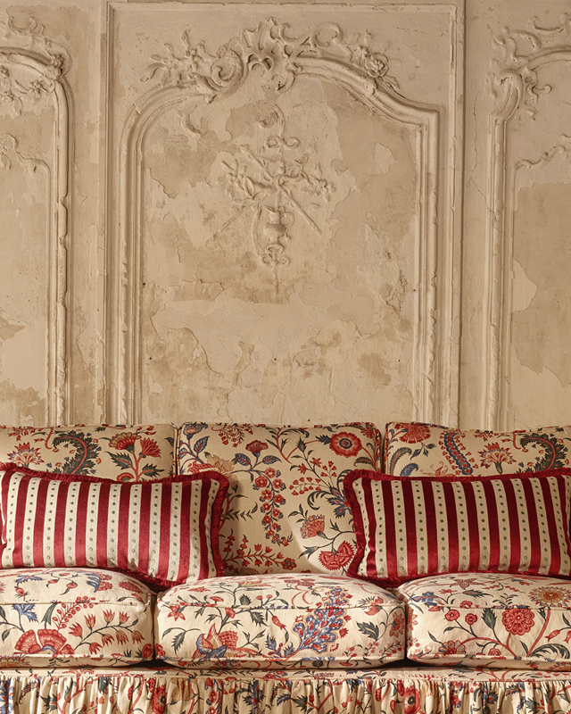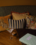 Evoking the elegance of classic French textiles, this tricolour velvet alternates intermediate stripes with delicate, playful polka dots. The contrast between matte and shiny textures adds an irresistibly tactile dimension, bringing a touch of spirited charm to the design.