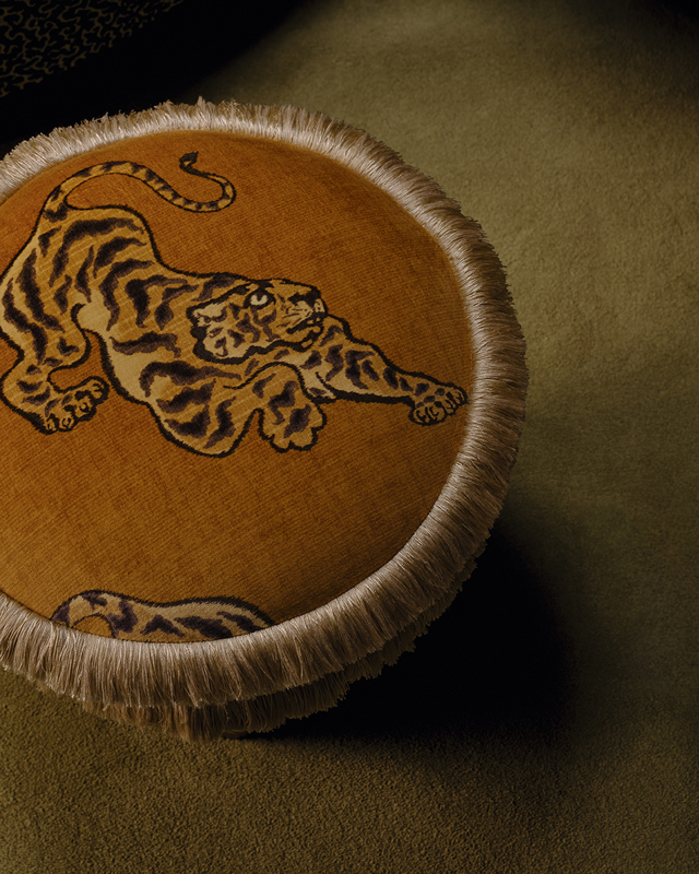 A majestic tiger print with undulating inky stripes unfolds across an opulent printed cotton velvet, its striking repeat creating a bold visual statement. Offering a soft touch and a luxurious feel, this design has a richly patterned and textured look.