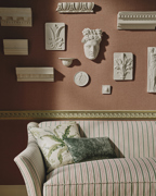 This fine quality pure linen herringbone plain is enriched by a contrasting weft that creates subtle tonal variation and a gentle sense of depth. The texture is refined yet full of character, allowing the natural beauty of the linen to be clearly expressed. Available in a considered palette of soft chalky tones, Hector Wallcovering brings quiet sophistication to walls. It is also offered as a coordinating fabric in the same colours, enabling a seamless and thoughtfully layered scheme across a space.